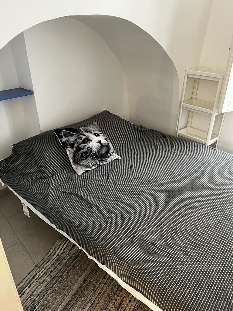 W mieszkaniu miejscem szczególnym jest sypialnia, która położona na podwyższeniu i zamykana drzwiami daje świetne miejsce wytchnienia od zgiełku plaży i południowego upału.